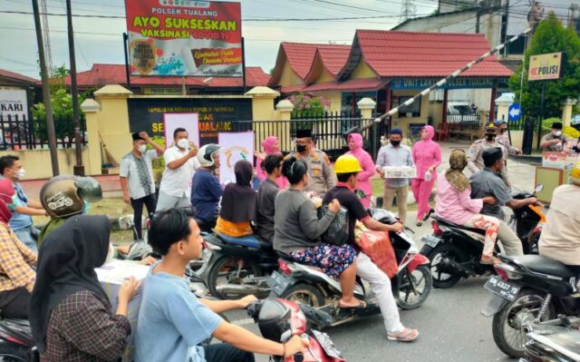 Kapolres Siak berpesan agar masyarakat tetap mematuhi Prokes atau Protokol Kesehatan dan melakukan Vaksinasi agar terciptanya imun yang kuat bagi tubuh untuk mengantisipasi Virus Covid-19.