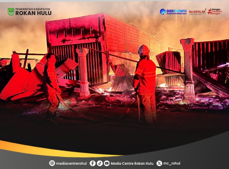 ROHUL, RIAU TERBARU. com – Kebakaran hebat terjadi di Pasar Lama Pekan Tebih, Kecamatan Kepenuhan Hulu, pada Rabu malam (11/02/2026).