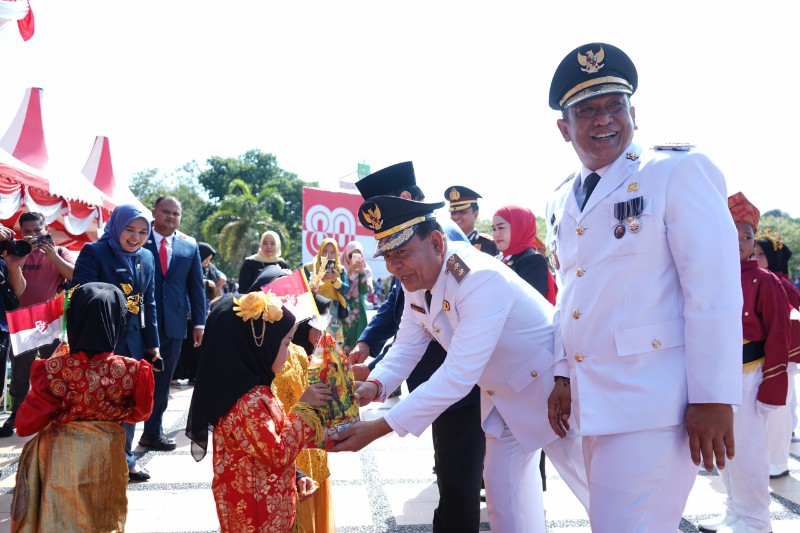 “Pada kesempatan itu Bupati dan Wakil Bupati Rohul bersama Ketua DPRD dan Forkopimda, menyerahkan Paket Kemerdekaan kepada siswa/Siswi, paket kemerdekaan tersebut terdiri dari paket kebutuhan sekolah dan makanan serta minuman bergizi