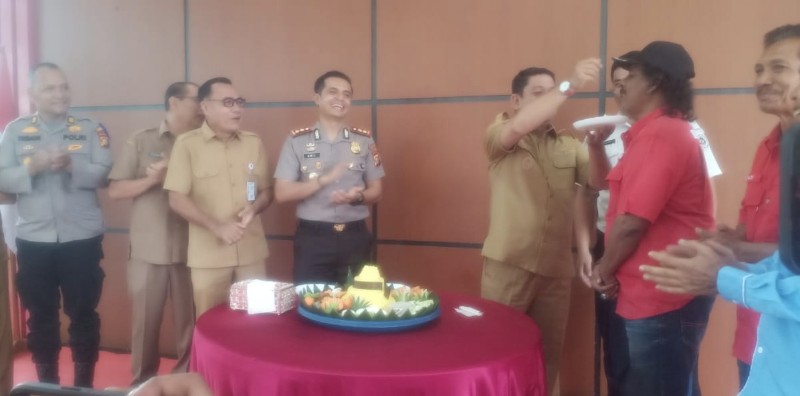 Acara ditutup dengan pemotongan tumpeng secara simbolis oleh Wabup dan Kapolres Rohul disuapkan untuk