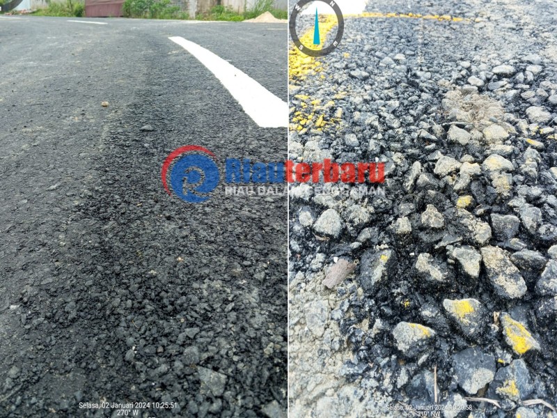 Dari pantauan awak media di lokasi, pada awal memasuki jalan tersebut sudah terlihat jelas bahwa permukaan lapisan aspal tampak kasar dibeberapa titik. Agregat batu pecah yang digunakan banyak yang timbul di permukaan aspal, sehingga tampak kasar.