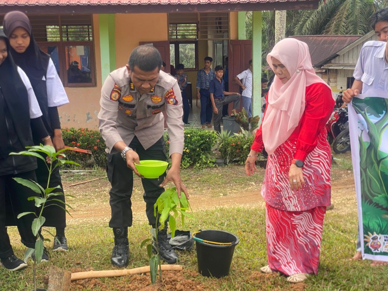 ROHUL, RIAU TERBARU. com – Bagian Sumber Daya Manusia (SDM) Polres Rokan Hulu menggelar program Green Policing dengan melaksanakan Penanaman Pohon dalam rangka Mensukseskan Program Kapolda Riau Penghijauan Alam Melindungi Tuah Menjaga Marwah Mewariskan Alam dan Nilai-nilai kebaikan tetap lestari untuk generasi yang akan datang di SMKN 2 Rambah Kecamatan Rambah Kabupaten Rokan Hulu, Provinsi Riau, Selasa (5/8/2025) Pagi