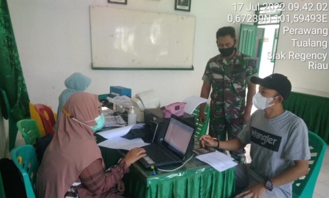 Danramil 04/Perawang Kapten INF MT Lumban Tobing menyampaikan kepada media bahwa untuk membantu percepatan serta pemerataan vaksinasi Covid-19 untuk warga, Koramil 04/Perawang sebagai satuan di bawah jajaran Kodim 0322/Siak turut membantu dengan membuka gerai vaksinasi Covid-19 dengan bantuan tim nakes.